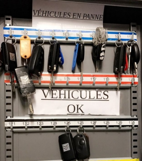 | Стойка для ключей от служебных авто, большинство из них висят в отделении для "разбитых автомобилей" |