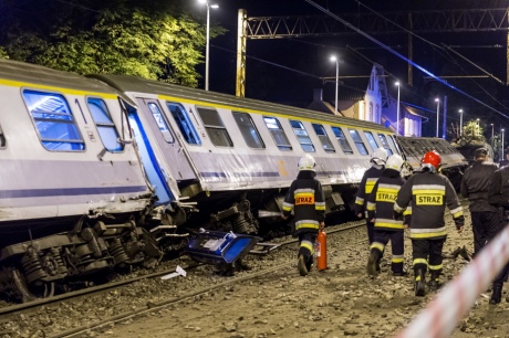 На севере Польши на железнодорожной станции Сментово товарный поезд столкнулся с пассажирским.