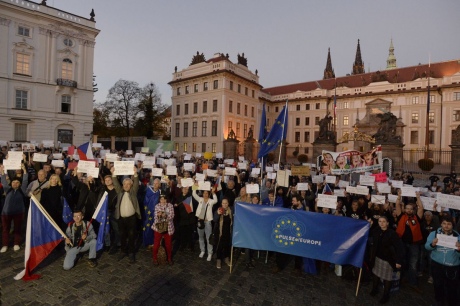 Перед входом в Пражский град, резиденцию президента Чехии, прошла демонстрация против позиции Милоша Земана касательно незаконно аннексированного Крыма.