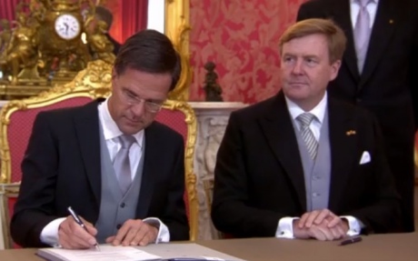 Рютте впервые был назначен на должность премьера Нидерландов в 2010 году, второй - в 2012-м. Примечательно, что тогда его назначение утверждала королева Беатрикс, но она отреклась от престола и сегодня новое правительство утверждал ее сын Виллем-Александр.