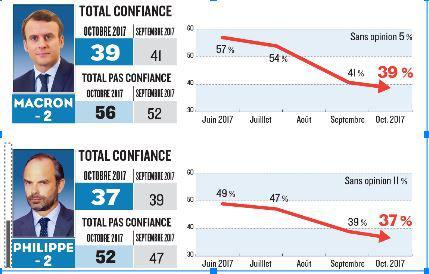 По сравнению с предыдущим месяцем на два процентных пункта снизился и рейтинг премьера Франции Эдуара Филиппа, до 37%.