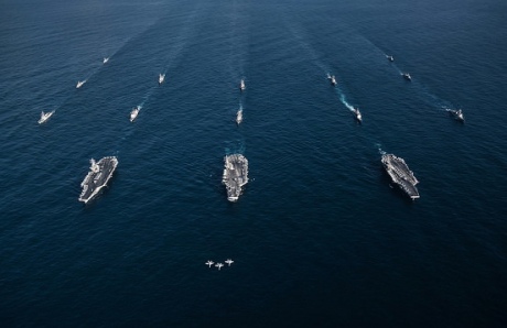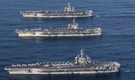 Впервые за последние 10 лет сразу три американские авианосные группы проводят учения в этом регионе.