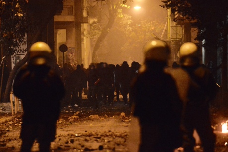 Сотни молодых людей напали на полицейских в Афинах, бросая в них камни, файеры и газовые снаряды. Полиция была вынуждена применить слезоточивый газ для разгона толпы.