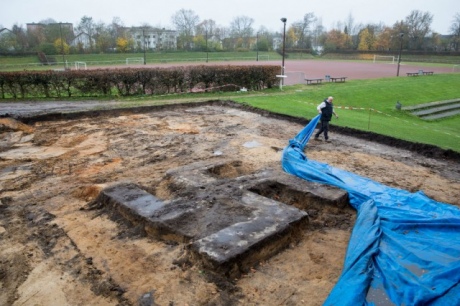 На спортивной площадке Гамбурга строители случайно наткнулись на гигантскую бетонную свастику.