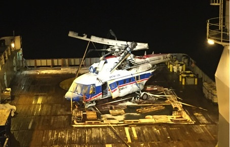 Российский вертолет Ми-8, упавший в море у берегов Шпицбергена, поднят на поверхноcть в ночь на 4 ноября.