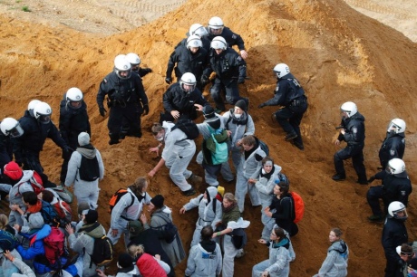 Впоследствии несколько сотен демонстрантов прорвались на территорию угольного карьера и продолжили акцию протеста. Полиция в ответ применила слезоточивый газ. Одного активиста задержали.
