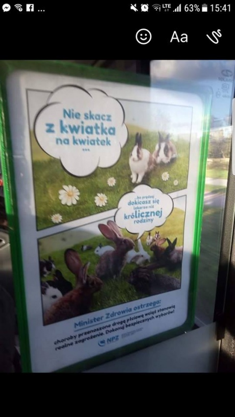 Кроме ролика, например, на остановках городского транспорта можно встретить постеры с кроликами и советами от министерства.