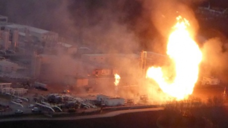 Взрыв произошел около 9 утра, после чего вспыхнул пожар. Тепловая волна, которая образовалась в результате взрыва и пожара, была такой силы, что расплавила автомобили на стоянке неподалеку.