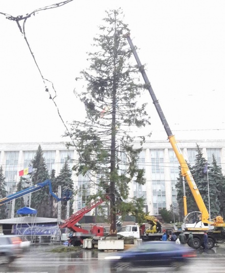 И.о. мэра Сильвия Раду пообещала установить новую елку за свой счет. Новую ель высотой 19 метров срубили в одном из жилых массивов города на территории бывшего детского сада.
