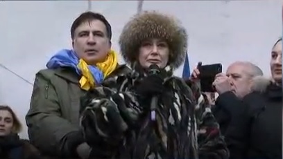 Британский евродепутат Джейн Коллинз, которая является членом евроскептической Партии независимости Соединенного Королевства (UKIP), присутствовала сегодня на митинге в Киеве вместе с Михеилом Саакашвили.
