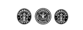 Сходство еще более укрепляется благодаря использованию того же черно-белого цвета, который выделяет центральный элемент, и использование одного и того же шрифта для элементов слова "Starbucks coffee" и "Сoffee rocks".