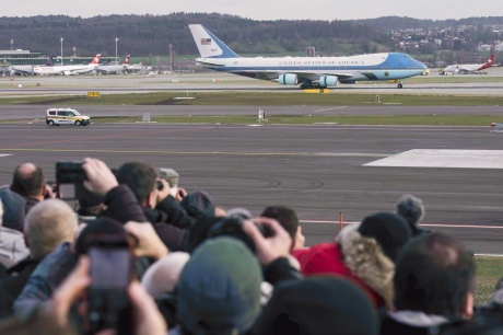 Ожидается, что американский президент пробудет в Швейцарии 29 часов 35 минут, завершив программу визита выступлением на Всемирном экономическом форуме в 14.00.