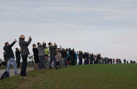 В районе аэропорта также собрались тысячи зрителей, желающих проследить за приземлением самолета американского президента.