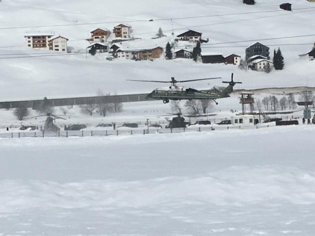 Еще до прибытия Трампа в аэропорту Цюриха приземлились шесть вертолетов Black Hawk и Super Pumas для сопровождения президента. Отдельные СМИ пишут даже о восьми вертолетах.