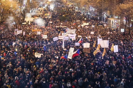 В Чехии тысячи людей в понедельник вышли на акцию протеста после назначения депутата-коммуниста Зденека Ондрачека председателем комиссии по генеральной инспекции сил безопасности.