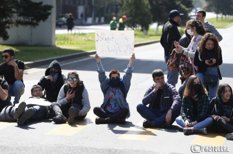 В среду утром колонна демонстрантов беспрепятственно прошла мимо здания парламента и дошла до дверей резиденции премьер-министра на проспекте Баграмяна, 26.