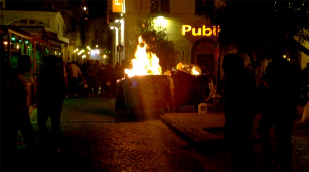 Они бросали в мигрантов бутылками и кусками тротуарной плитки. Через несколько часов беспорядки распространились на набережную города, нападавшие подожгли мусорные мусора и напали на полицию.