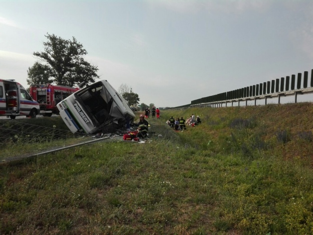 В аварии погибли двое человек, еще 16 травмированы. По меньшей мере шесть человек в тяжелом состоянии. Часть раненых с помощью вертолета доставили в больницу в Быдгоще.