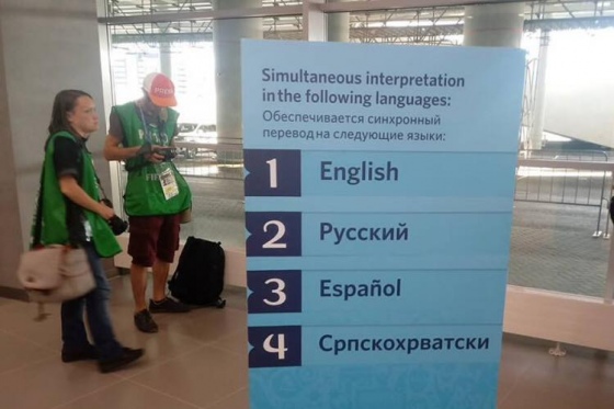 Хорватская футбольная ассоциация выразила "острые возражения" Международной федерации футбола (ФИФА) из-за размещения в конференц-залах Чемпионата мира в России щитов, надписи на которых обещают журналистам синхронный перевод на сербохорватский язык.