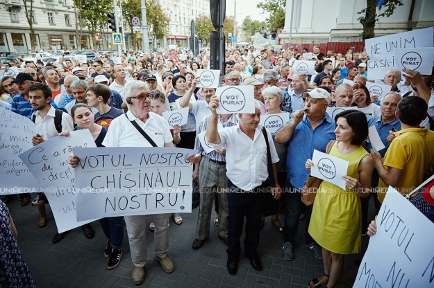 На следующий день в центре Кишинева, в том числе у офиса Демпартии, прошел протест против решения суда.