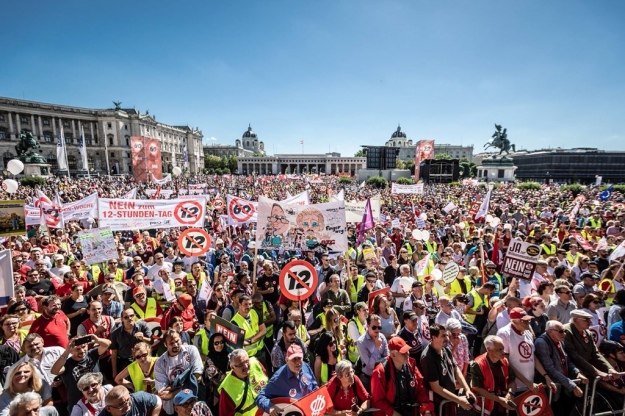 В столице Австрии Вене десятки тысяч людей протестовали против планов правительства принять изменения в трудовое законодательство, которые сделают возможным введение работодателями 12-часового рабочего дня без повышенной оплаты труда.