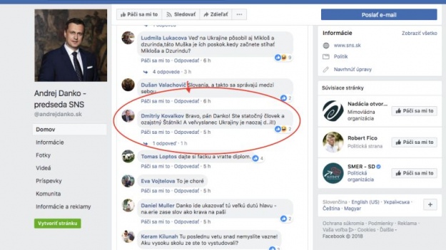"Браво, господин Данко. Вы смелый человек и настоящий державник. А посол Украины просто д * ил", - написал Ковальков на странице спикера словацкого парламента Андрея Данко в Facebook. Данко ранее заявил, что посол Украины не должен указывать депутатам Словакии, куда им ехать или не ехать.