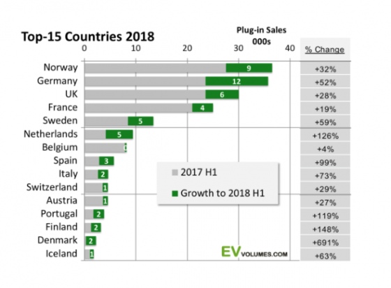 Продажи электромобилей, по данным аналитиков, в первой половине 2018 года увеличились на 42% по сравнению с аналогичным периодом прошлого года и достигли 195 тысяч. В общем электромобили пока что составляют лишь 2% от всех покупок машин в Европе.