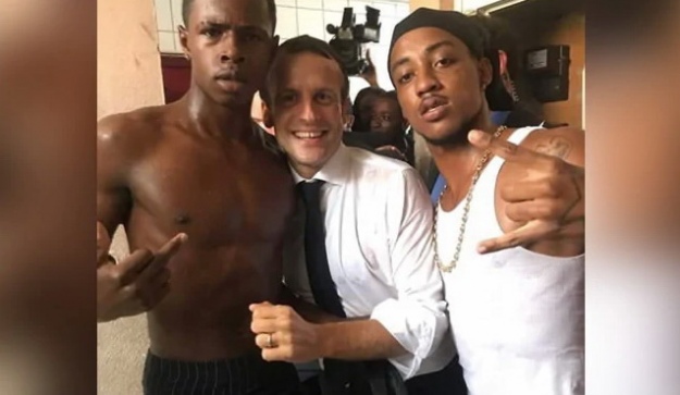 Макрон попросил его "завязывать с преступностью" и сфотографировался с ним и его другом, который встал перед камерой с обнаженным торсом, показывая средний палец. Это фото с острова Сен-Мартен стало вирусным.