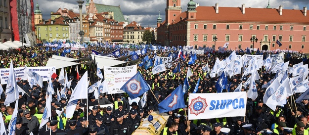 Тысячи полицейских, пограничников, тюремных надзирателей принимают участие в крупной акции протеста в Варшаве.