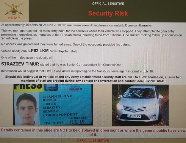 Британским военным приказали безотлагательно сообщать в полицию в случае появления российских журналистов из государственных СМИ вблизи военных объектов.