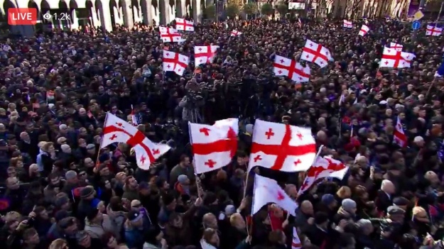 В Тбилиси на проспекте Руставели, проходит массовая акция протеста с требованием проведения досрочных парламентских выборов.