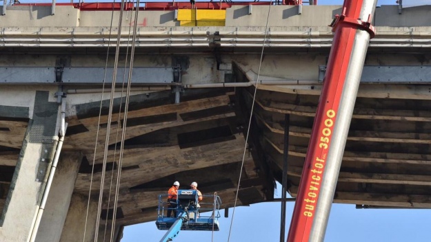 В пятницу работники компаний Omini и Fagioli тпочали снос 38-метровой секции моста, которая осталась после обвала.