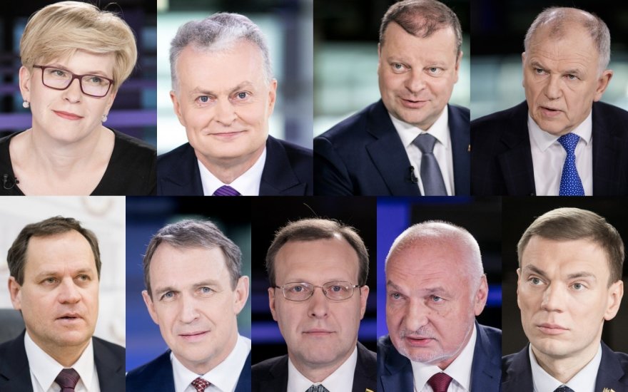 9 апреля ЦИК объявила кандидатами социал-демократа Витяниса-Повиласа Андрюкайтиса, философа Арвидаса Юозайтиса, европарламентария Валентинаса Мазурониса, экономиста Гитанаса Науседу, членов парламента Миндовга Пуйдокаса и Наглиса Путейкиса, кандидата от правящих "крестьян" - премьера Саулюса Сквернялиса, кандидата от консерваторов - парламентария Ингриду Шимоните, главу Избирательной акции поляков Литвы - Союза христианских семей, европарламентария Вальдемара Томашевского.