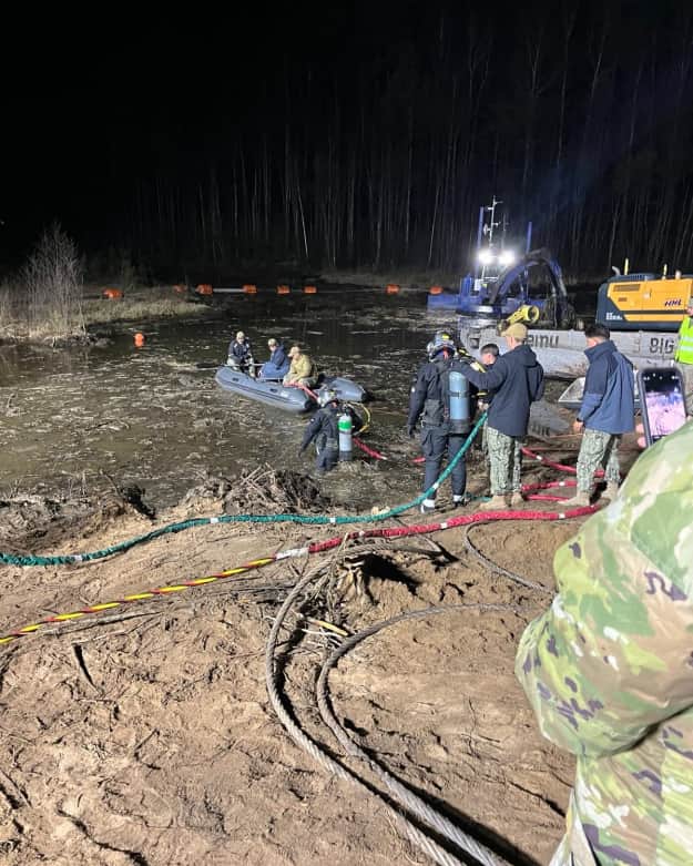 В субботу поздно вечером водолазы Военно-морских сил США совершили первое погружение в болотистый водоем, но не смогли добраться до затонувшей бронемашины, сообщили Вооруженные силы США в Европе и Африке.