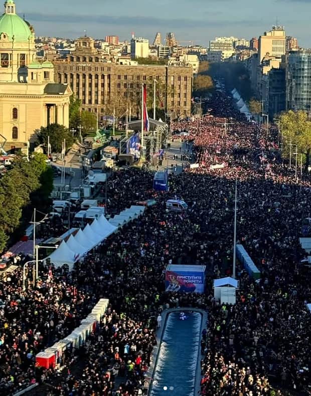 Митинг под названием "Не отдадим Сербию" рассматривается как ответ Вучича на большой антиправительственный митинг 15 марта, когда более 100 тысяч человек приняли участие в крупнейшей за последние десятилетия акции протеста.