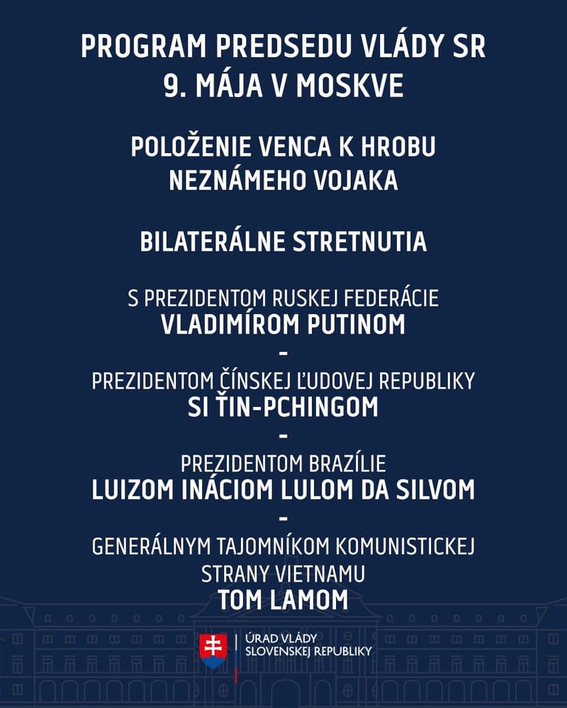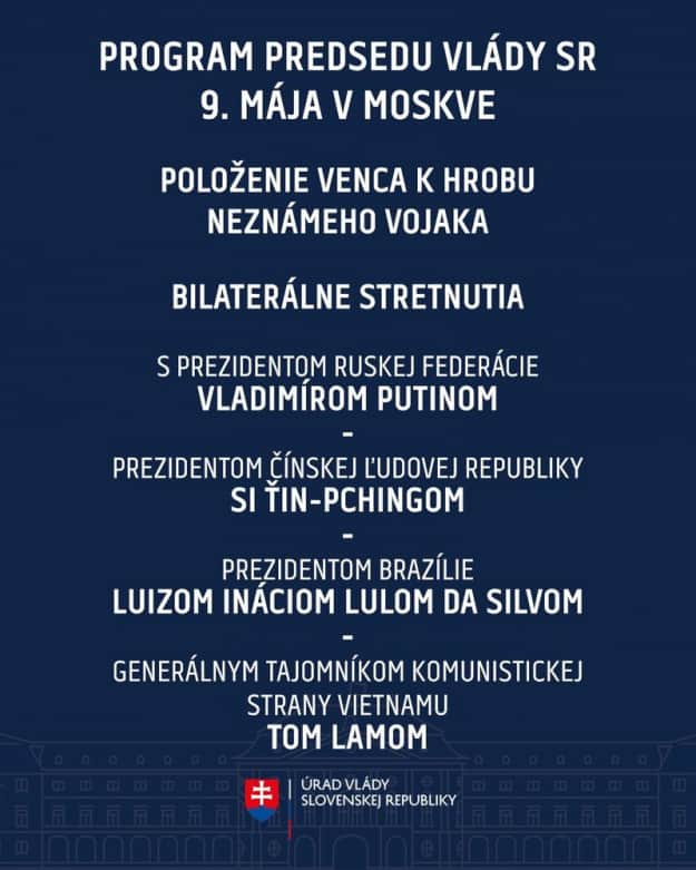 Днем 7 мая на Facebook-странице правительства Словакии опубликовали программу визита Роберта Фицо в Москву.