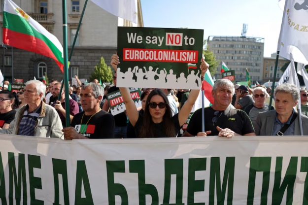 Тысячи протестующих собрались у здания парламента Болгарии в Софии. Они размахивали болгарскими флагами и скандировали: "Нет евроколониализму".