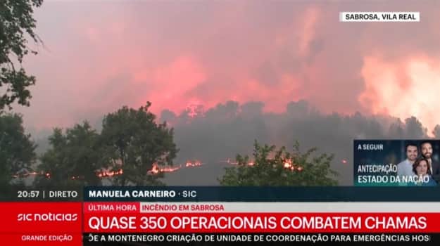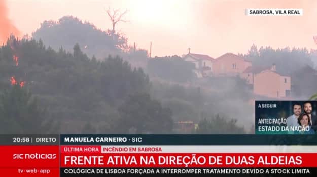 На севере Португалии борются с крупным лесным пожаром в муниципалитете Саброса, из-за него пришлось покинуть дома жителям двух населенных пунктов.