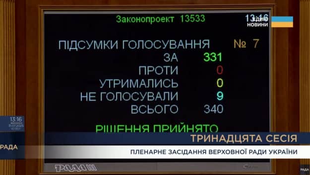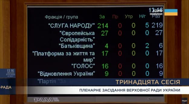 Дополнено: Сразу после этого депутаты проголосовали за то, чтобы спикер Верховной Рады безотлагательно подписал принятый закон и направил его президенту.