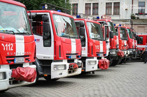 Украинские спасатели получили от Латвии 16 пожарных автомобилей.