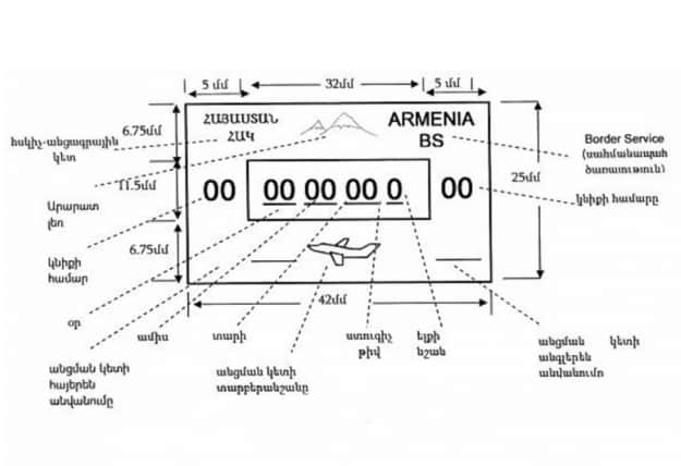 Согласно изменению, на дате-печати на армянском и английском языках будут указываться только слова "ՀԱՅԱՍՏԱՆ" и "ARMENIA", наименование пункта пересечения государственной границы, день, месяц и год пересечения государственной границы, а также изображены соответственно отличительные знаки воздушного, железнодорожного или автомобильного пунктов пропуска.