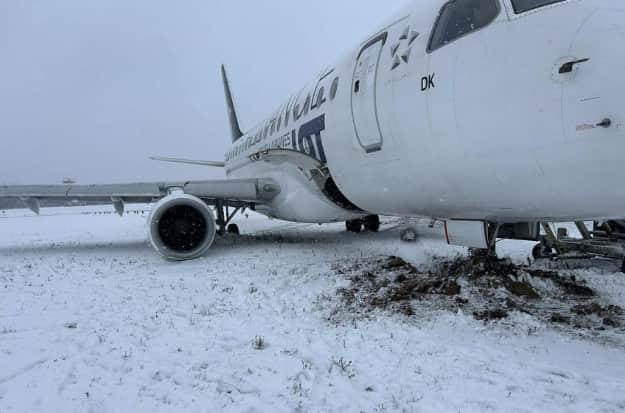 Случай произошел с рейсом LOT из Варшавы. Примерно в 13:40 самолет после приземления в Вильнюсе, где наступила зимняя погода, выехал за пределы взлетной полосы. Никто из людей на борту не пострадал.