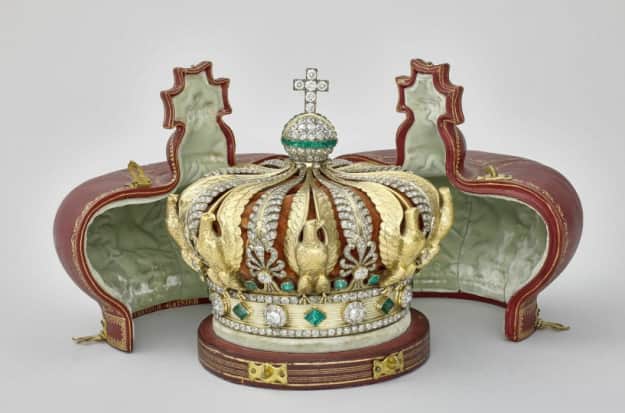 Де Кар сказала, что первоначально украшенная 1354 бриллиантами и 56 изумрудами корона потеряла "несколько небольших кусочков бриллиантов" и одного из восьми золотых орлов, которые ее украшали.