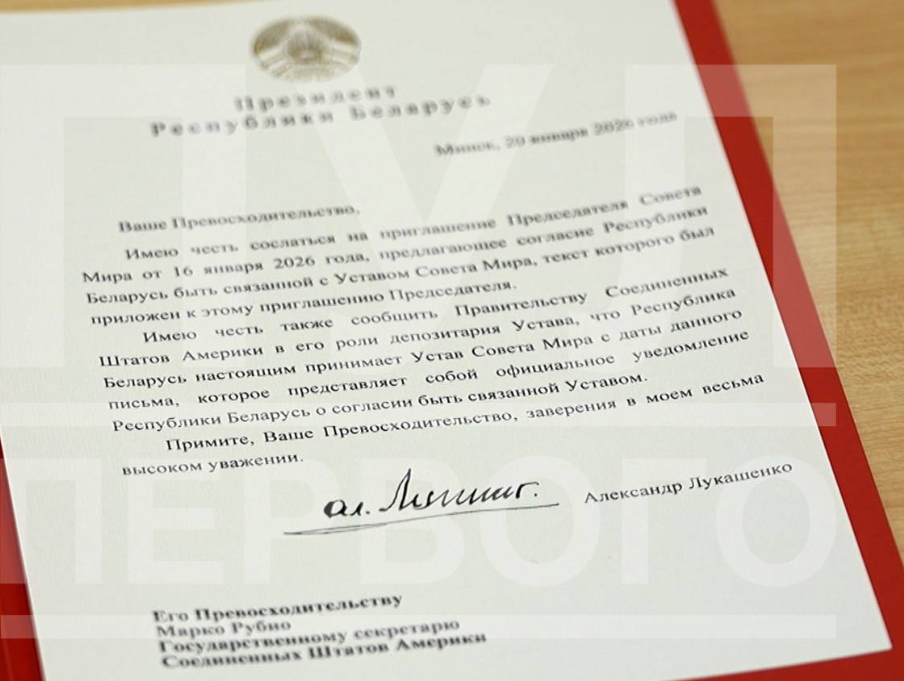 Как отмечается, Лукашенко подписал документы о присоединении Беларуси к Совету мира, а также о выполнении положений устава Совета мира в соответствии с предполагаемой процедурой, которая "была определена в письме президента США".